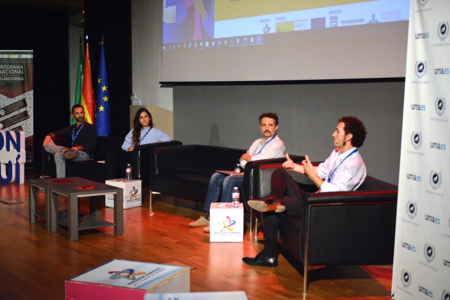 Coloquio con el director, D. Ian de la Rosa, las actrices Dña. Fatema Benalghani Bousrij y Dña. Sheima El Haddad Bousrij. Con la participación de Dña. Hoda Abou El Arais, integradora social y referente del barrio El Puche (Almería).